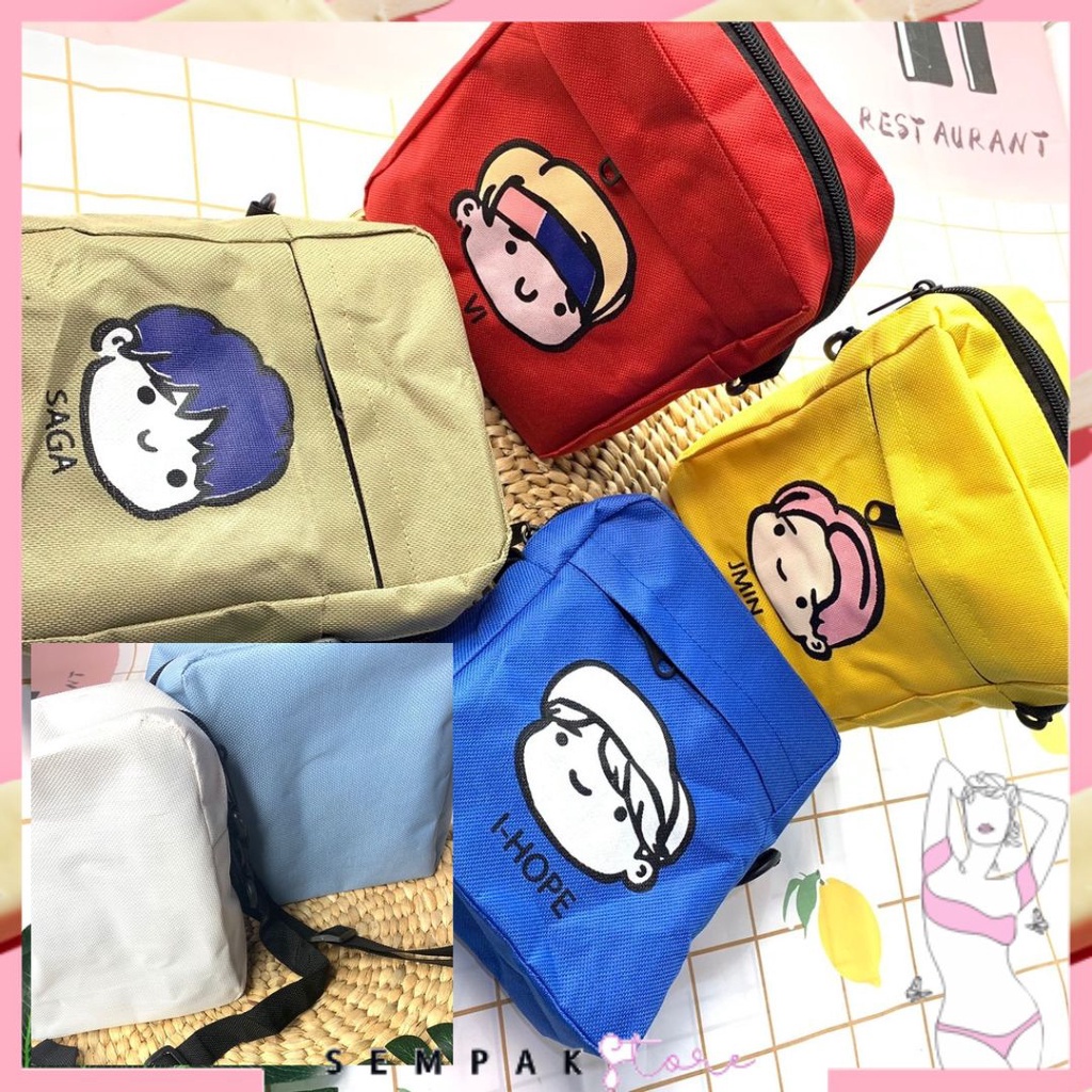 Detail SS Tas Slempang Wanita Army Korea Sling Bag Wanita Motif Kartun Kanvas Tas Fashion Wanita