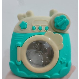Mainan mesin cuci mini seolah-olah anak cuci baju, tidak hanya selalu masak-masak. Bisa ditekan dan mesin cucinya bisa putar dengan lampu menyala setelah ditekan, bentuknya juga seperti kamera jadi seolah-olah bisa lagi ambil foto juga.