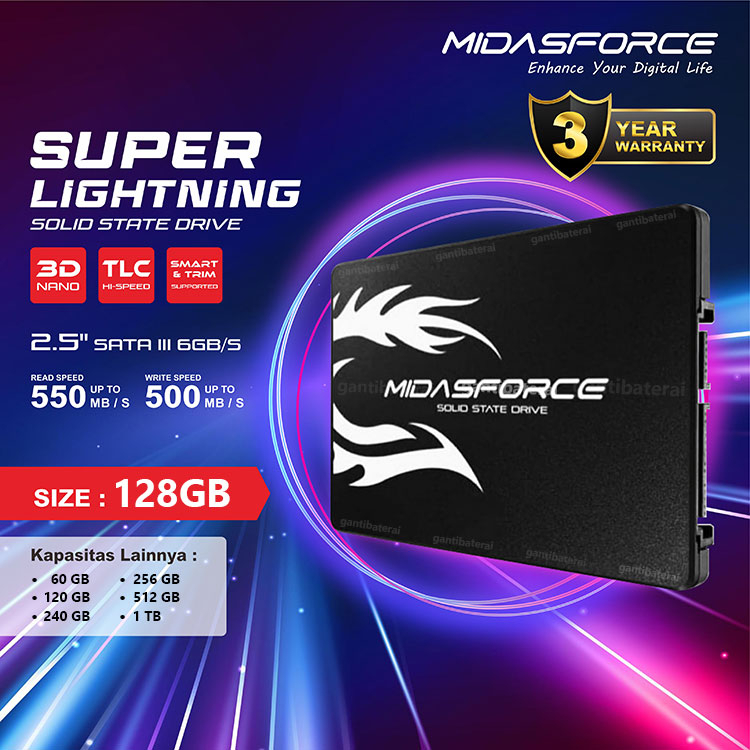 Spesifikasi Lengkap: Tipe: 2,5" SATA3 6GB/S Kapasitas : 128GB Write Speed : Up To 500 MB/s Read Speed : Up To 550 MB/s Support S.M.A.R.T : Yes Support Trim : Yes Power Consumption : 5 V