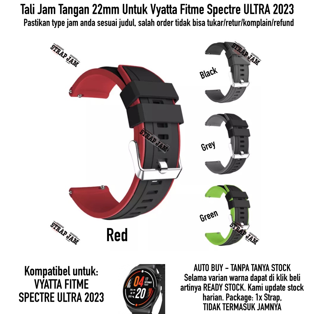 Detail SSR Tali Jam Vyatta Fitme Spectre Ultra 2023 - Strap 22mm Rubber Silikon Sporty Silver Buckle