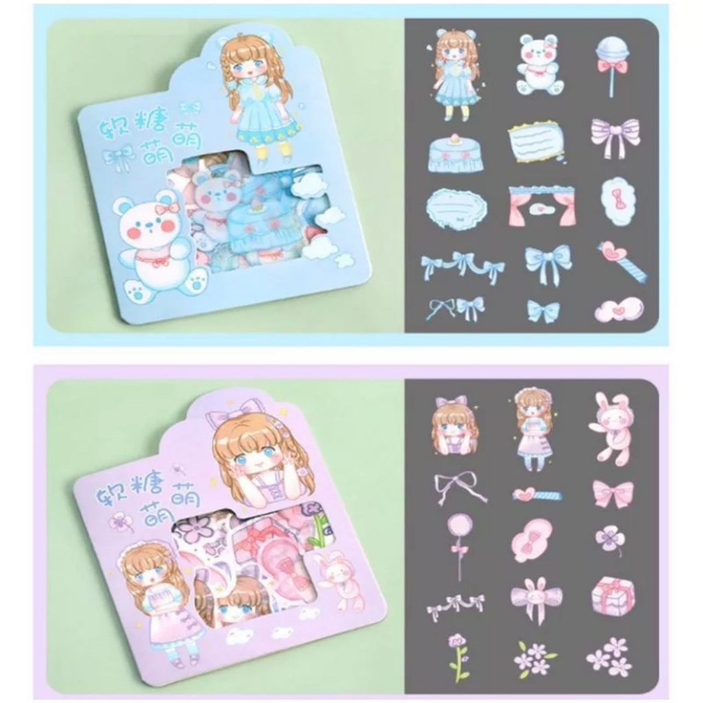Stiker Dekorasi cute girl 1 bks berisi 45 stiker 15 gambar berbeda x 3 jadi 1 motif ada 3 lembar , total 1 bungkus ada 45 lembar/pcs ada 4 warna, silakan di pilih sesuai varian masingf-masing bahan pvc anti air
