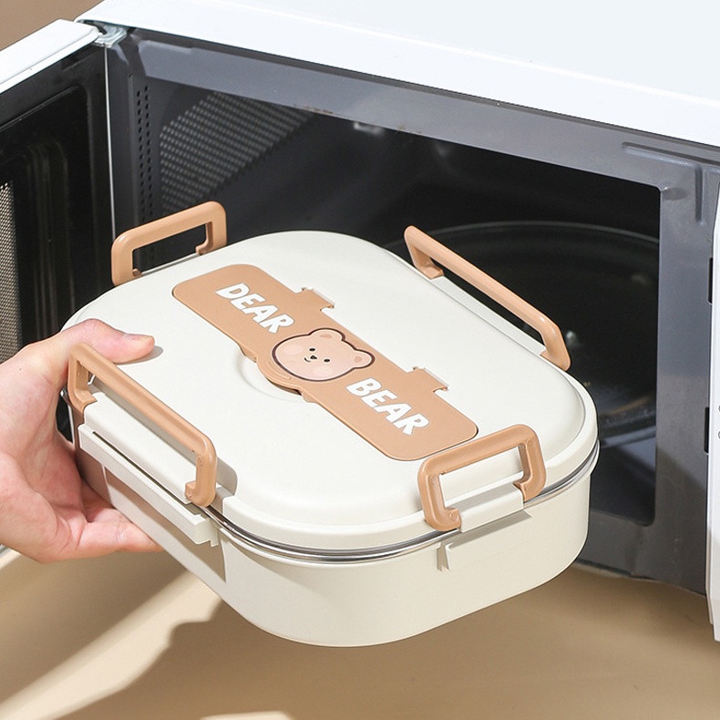 Dilengkapi dengan alat makan stainless steel (sendok dan sumpit) yang dapat disimpan di bagian atas lunchbox. Tersedia Tas yang dilapisi dengan aluminium foil serta terdapat tempat sup anti tumpah lubang udara