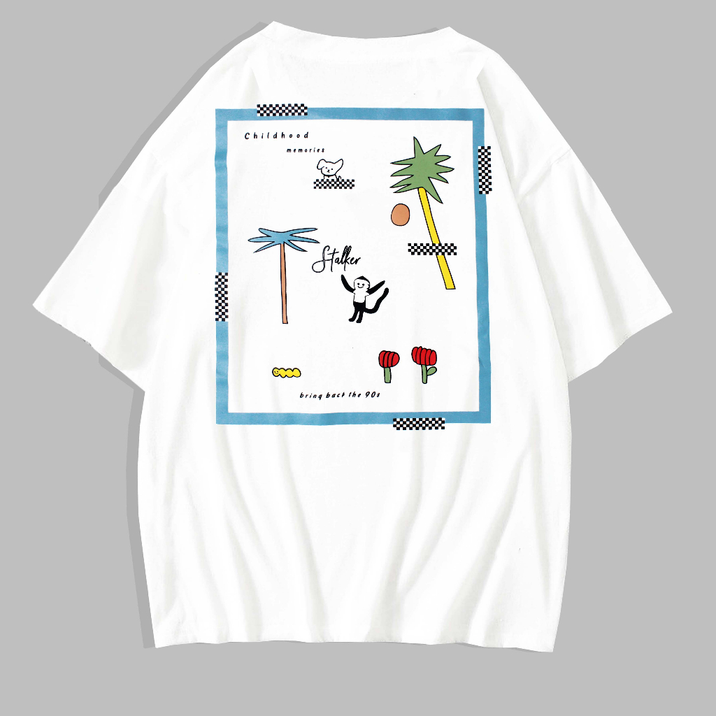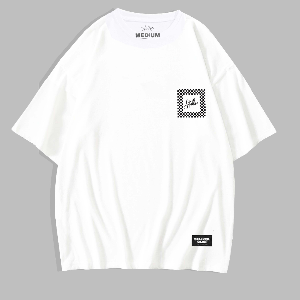 T Shirt Kaos Oversize Stalker Warna : Putih Bahan: Katun Combed 24’S, Sablon Plastisol Ink
