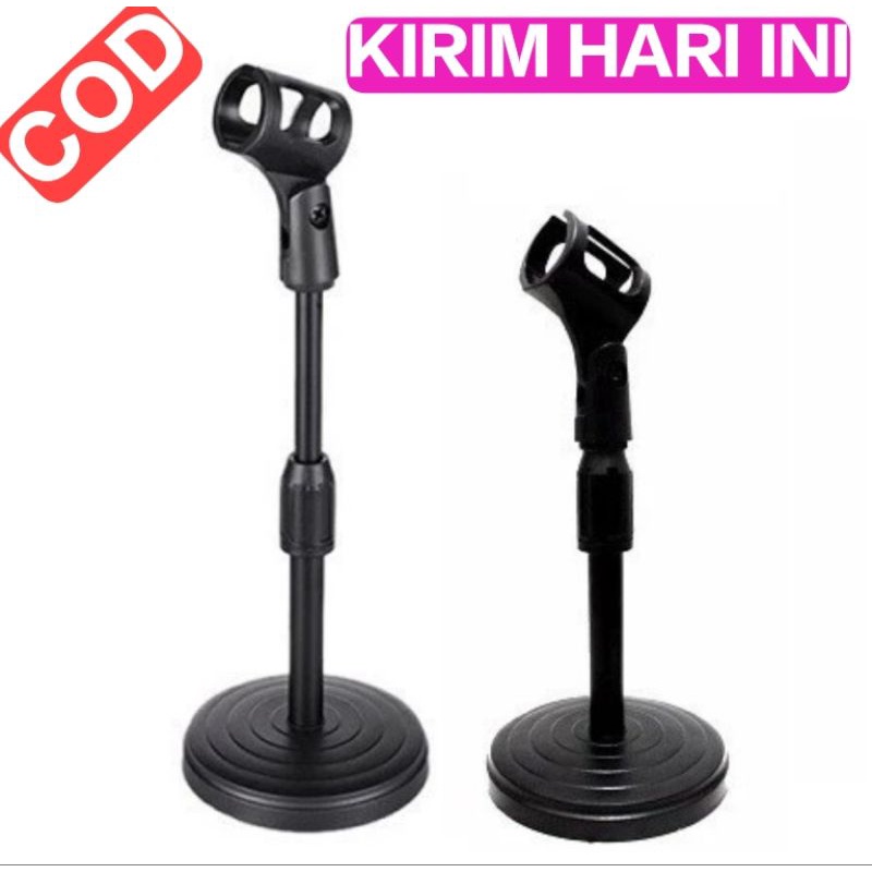Item dalam box : 1 x Tiang Stand 1 x Plat bulat / tatakan stand mic 1 x Micophone Holder #standmic #standmicpendek #standmicpendekkakibulat