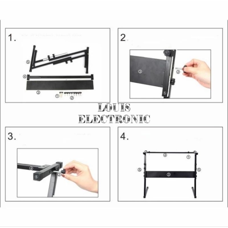 Material Besi Dimensi Tinggi 54 - 82 cm Lebar: 76 cm Lain-lain Cocok untuk Keyboard Tipe 44, 54 dan 61 Key