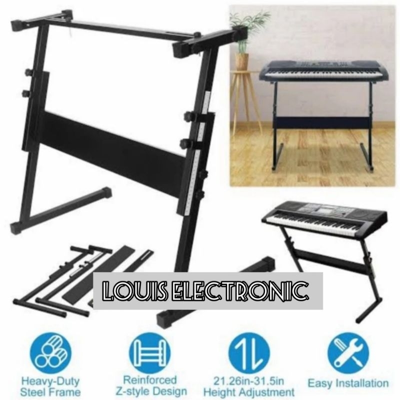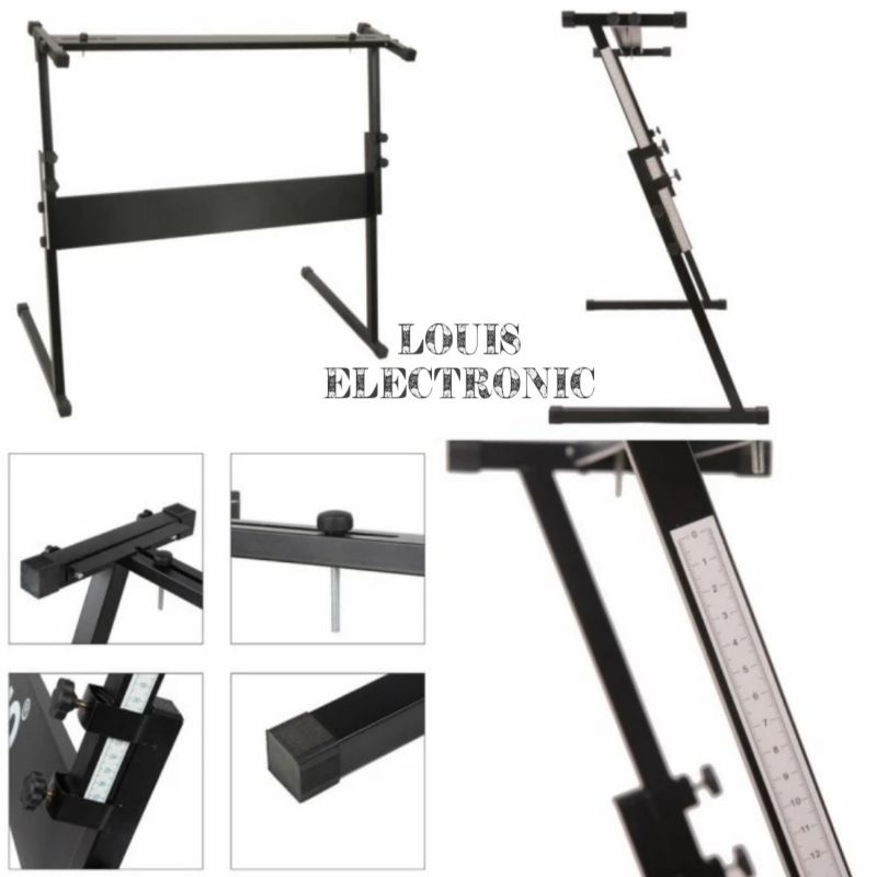 Gunakan stand Keyboard untuk meletakkan keyboard atau piano digital Anda. Stand dengan desain menyerupai huruf Z ini dapat menyangga keyboard dengan optimal. Dilengkapi dengan sistem penyangga teleskopik yang ketinggiannya dapat diatur antara 54 cm hingga 82 cm, guna menyesuaikan posisi nyaman pengguna.