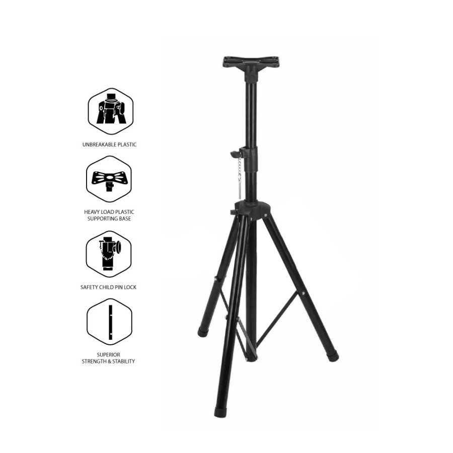 - With material Unbreakable Plastic - Safety child pin lock - Heavy load plastic supporting base - Max load up to 60kg - Superior Strength & Stability - Easy to Adjust The Height Manually - 90 - 160cm Maximum height adjust - Available with black-gray color - Mounting Hardware Included