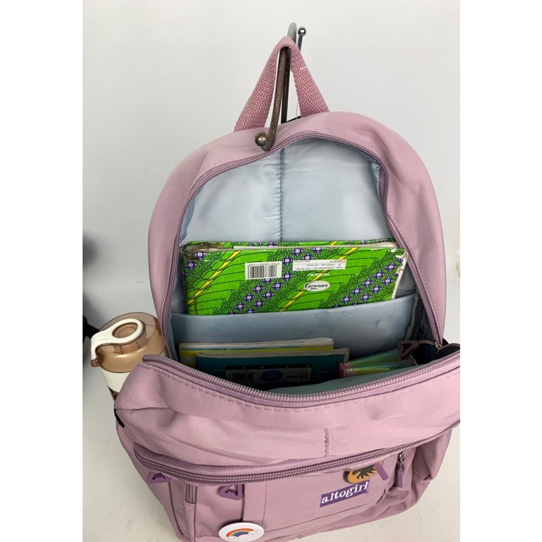 715237 Detail • Bahan : Poliester Halus • Ukuran (pxlxt) : 30x14x39cm • Untuk kelas (rata-rata) = SD-SMP - Terdiri dari 3 ruang - FREE RAIN COVER ---------------------------------------------------------------------------------------------------- Fitur - Ada slot botol minum di sisi kiri dan kanan - Ada slot tempat kertas dibagian dalamnya