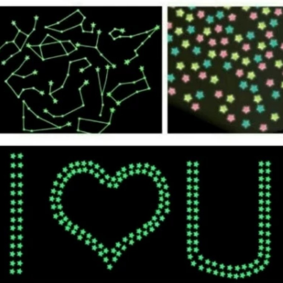 - Stiker motif bintang yang dapat menyala dalam gelap (Glow in the dark).
