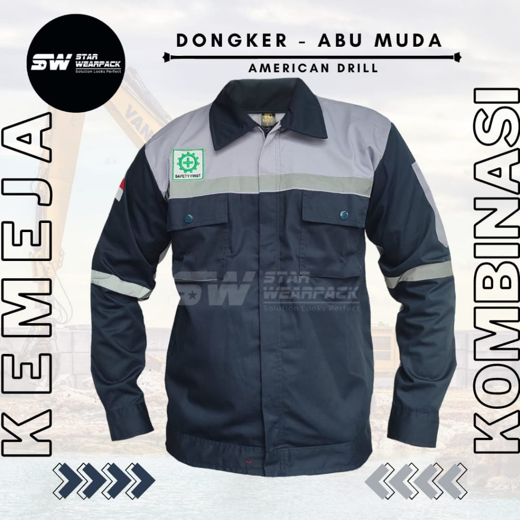 Detail Star Wearpack - Seragam Kerja Proyek Warna Dongker Kombinasi Abu Muda