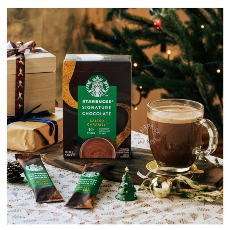 ADDITIONAL INFORMATION When chocolate meets caramel! Starbucks Signature Chocolate layered with hints of delicious salted caramel! Stir with milk and indulge in this delivious chocolatey treat, sip after satisfying sip.