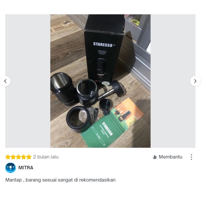 Staresso SP-200 --------Isi yang ada di dalam kotak kemasan: - 1 Staresso SP-200 Handy Espresso Maker - 1 Tempered Glass Staresso - 1 Spoon/Tamper - 1 Mini Brush - Manual Book