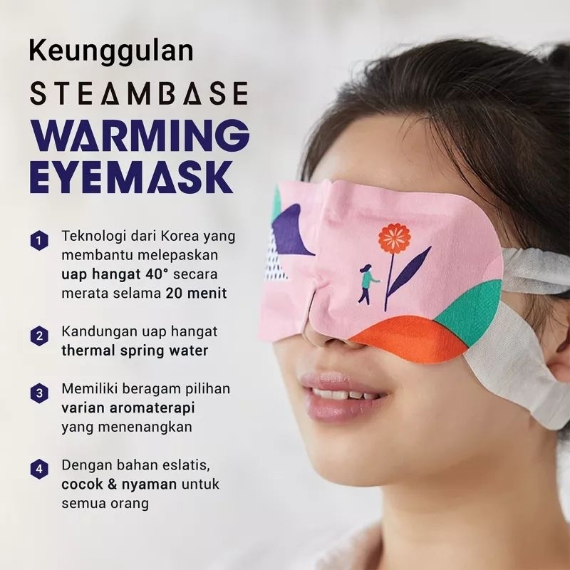Steambase Warming Eyemask adalah masker mata yang mengeluarkan uap hangat mengandung mineral dari pemandian air panas Onyang untuk memberi efek relaksasi pada mata yang lelah dan melembapkan mata yang kering.