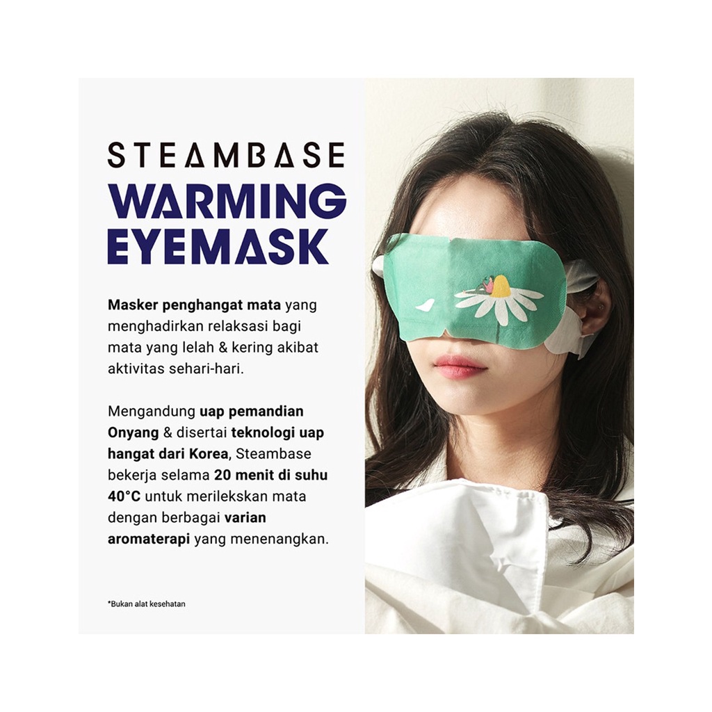 Steambase Warming Eyemask adalah masker mata yang mengeluarkan uap hangat mengandung mineral dari pemandian air panas Onyang untuk memberi efek relaksasi pada mata yang lelah dan melembapkan mata yang kering.
