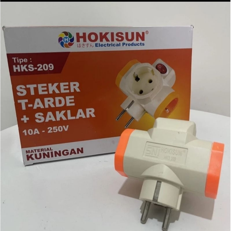 Detail Steker colokan T arde + Saklar Lampu Switch 3 ubang Hokisun
