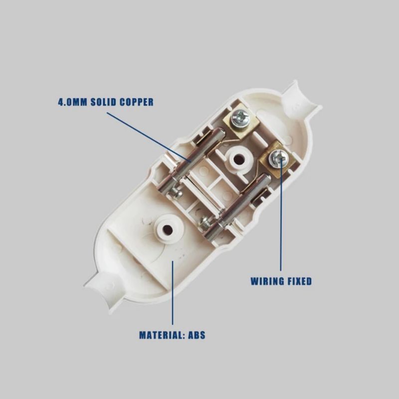 Detail Steker Gepeng Colokan Kabel Listrik 10 Ampere - Konektor 10A Putih