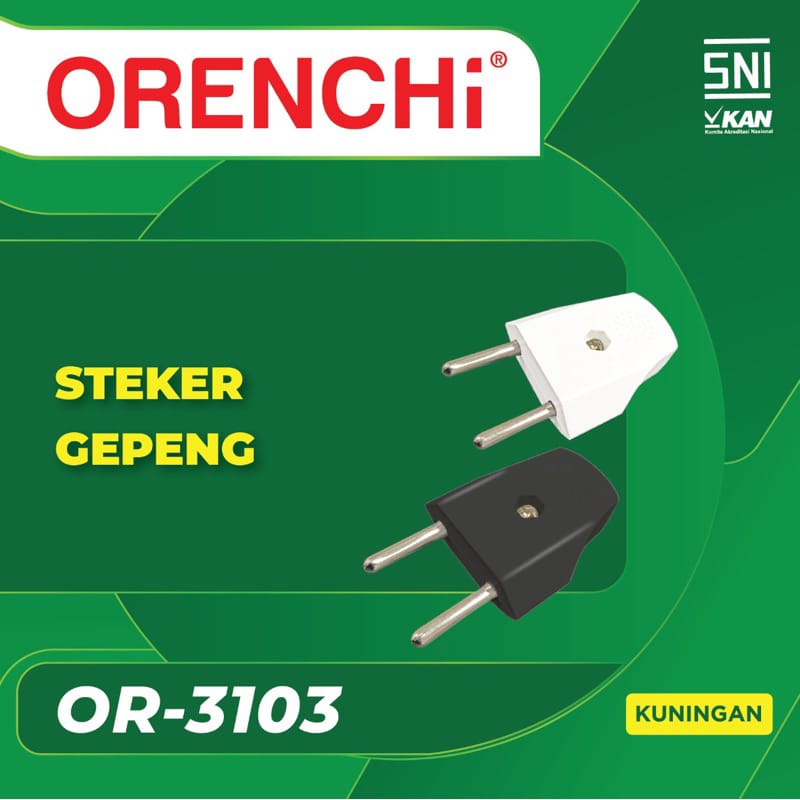 * Steker gepeng terminal kuningan * Original ORENCHI * SNI * Tahan panas dan tidak mudah pecah * Untuk Warna Random