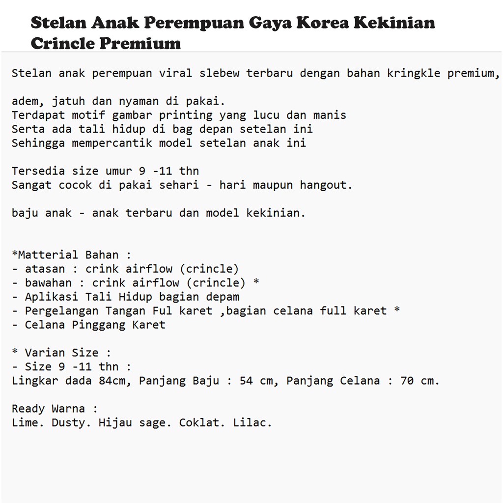 Detail Stelan Anak perempuan Crincle Viral slebew terbaru dengan bahan kringkle premium Kiranna - JCCollections