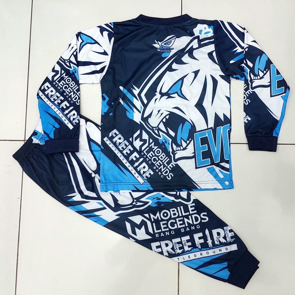 Detail stelan baju ff pubg/baju free fire/stelan anak evos lengan panjang celana panjang