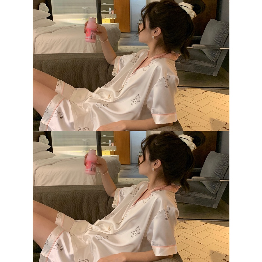 Pakaian Wanita > Pakaian Tidur & Piyama > Piyama > ∈stelan baju tidur wanita Xinbangbang Homedress summer cartoon satin comfort cool feeling pajamas set soft skin-friendly home service women #COD baju tidur wanita bahan kaos
