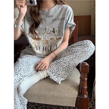 Pakaian Wanita > Pakaian Tidur & Piyama > Piyama > ❃◈☬stelan baju tidur wanita Xinbangbang Homedress cartoon puppy short-sleeved pajamas summer thin section comfortable and breathable home service outerwear for women #COD baju tidur wanita bahan kaos