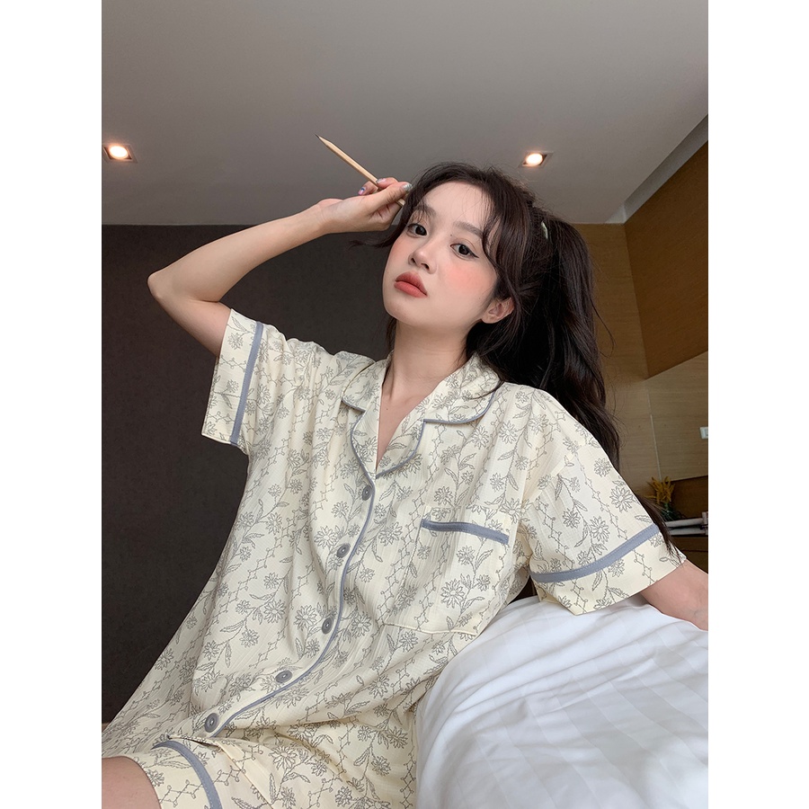 Pakaian Wanita > Pakaian Tidur & Piyama > Piyama > ₪stelan baju tidur wanita Xinbangbang Homedress retro pattern texture breathable pajamas students are comfortable and can wear home clothes for women #COD baju tidur wanita bahan kaos