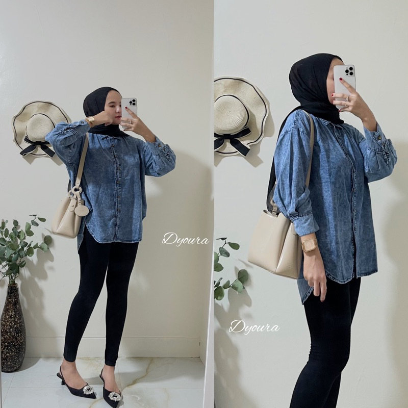 Detail SETELAN denim import / setelan kemeja Jeans wanita import premium/ setelan cewek/kemeja cewek jeans