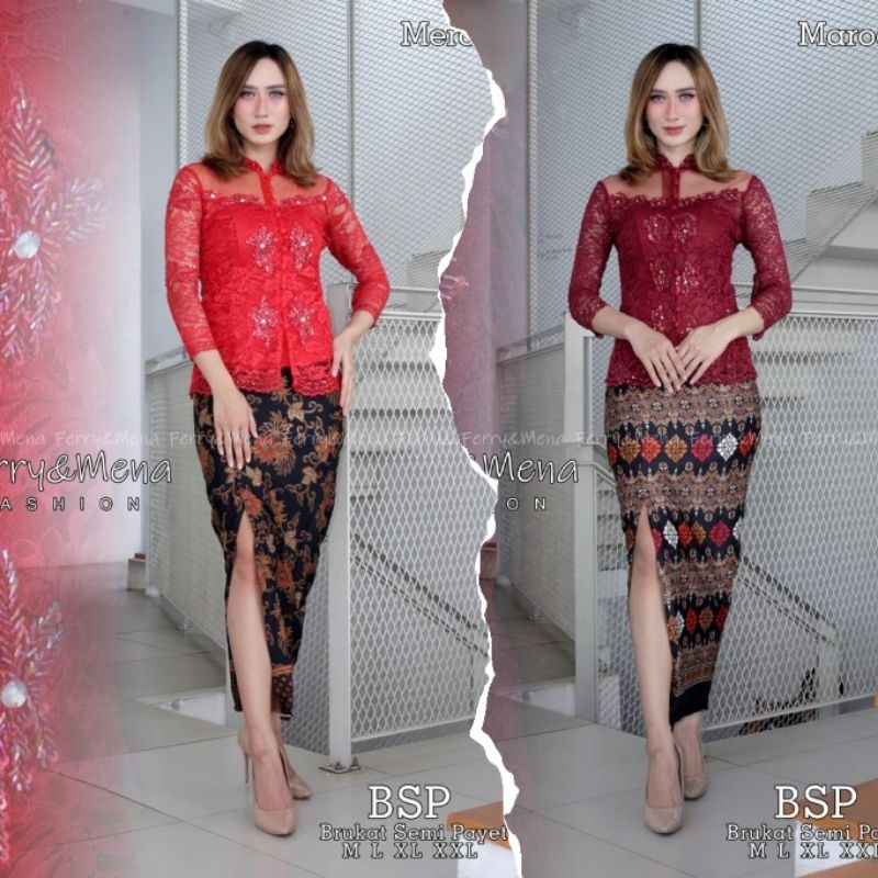 🎈Bahan : 🎈Brokat premium bordir payet. 🎈Kancing depan aktif. 🎈Long torso 🎈Rok span bahan batik silk 🎈Size : M 96, L 104, XL 108. Original Butik High Quality Recomended