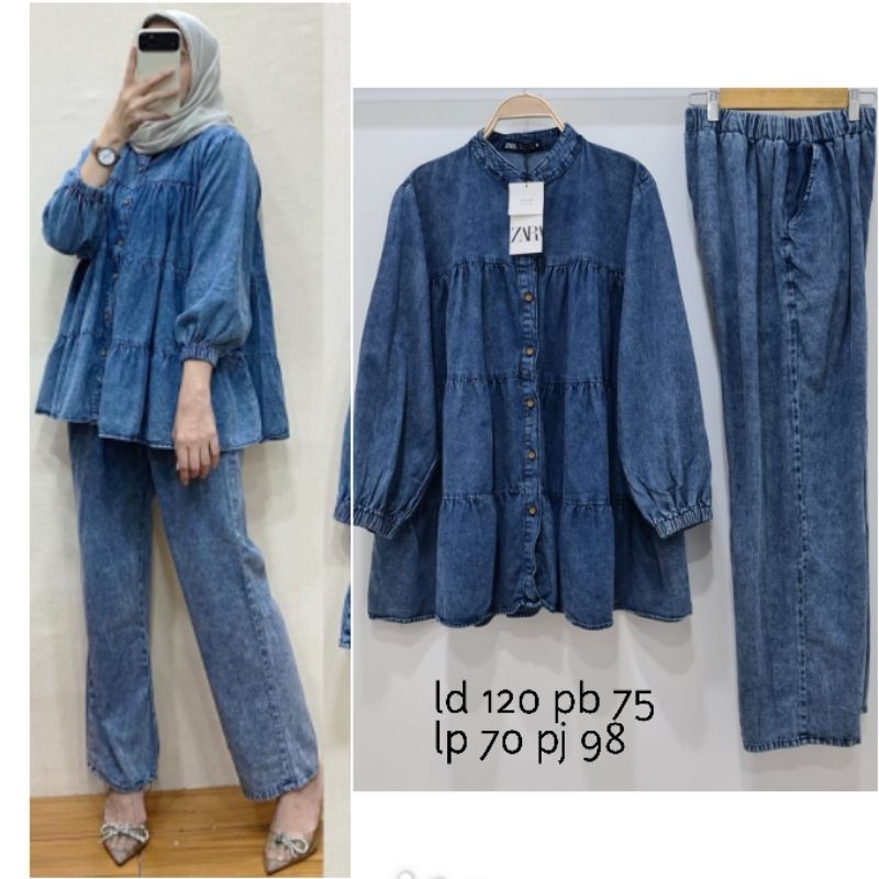 Your browser does not support the video tag.Video perkenalan produk stelan zara denim prenium. Sumber: Shopee.