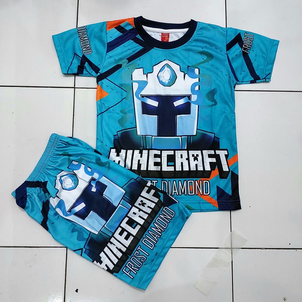 Detail stelana anak minicraft full printing/baju kaos celana minicraft printing size 2-10thn