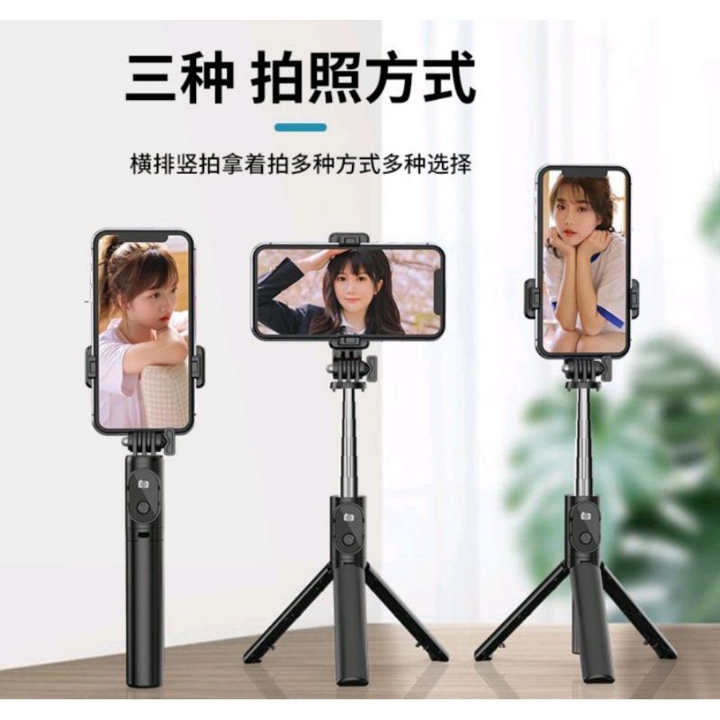 Model : tongsis + tripod + remote bluetooth Posisi HP : bisa landscape dan potrait (360 derajat) vertical / horizontal Product size : 185x45x38mm Desktop status : 31-63 cm Mobile phone clamp distance : 58-92 mm Product material : ABS + stainless steel Battery specifications : CR1632/70mAh (replaceable) Fitur : remot bluetooth dapat dilepas dngn jangkauan 10meter