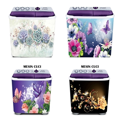Sticker Mesin Cuci 2 Tabung Ukuran : 75x100cm - Bahan Sticker Vynil Gloss Import Premium Class. - Anti air dan Tahan panas, Tahan lama, Lem Kuat - Hasil Cetakan High Quality menggunakan Mesin jepang Roland dan Mimaki. - Finishing Laminating Gloss, melindungi Mesin Cuci dari goresan, tumpahan. - Sticker Tidak merusak cat dan body Mesin Cuci, bosan tinggal lepas ganti lagi