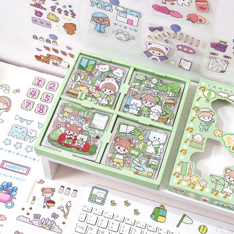 Buku & Alat Tulis > Buku Tulis & Kertas > Label & Stiker > Sticker momo Stiker Motif Tempel Kartun Karakter Anti air 1 box isi 100 lembar lucu Korea Viral GROSIR UNIK