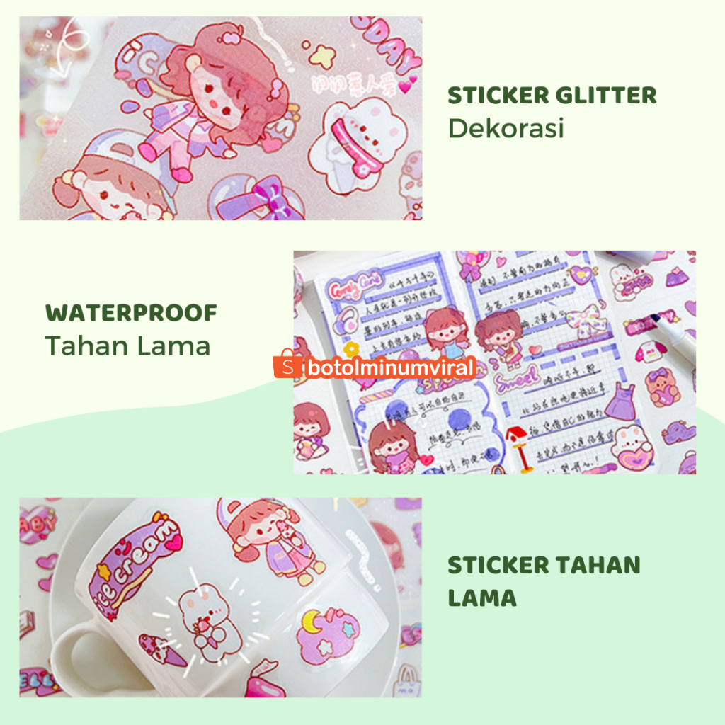 ๐ Sticker Box Glitter Roll - 1 Box Isi : 9 Sticker & 5 Sticker Roll - 9 Sticker Ukuran: 8x8cm / 5 Sticker Roll Panjang 35cm - Motif Berbeda & tahan air - Ready SATURDAY PURPLE- PERFUME PINK - HAPPY PURPLE