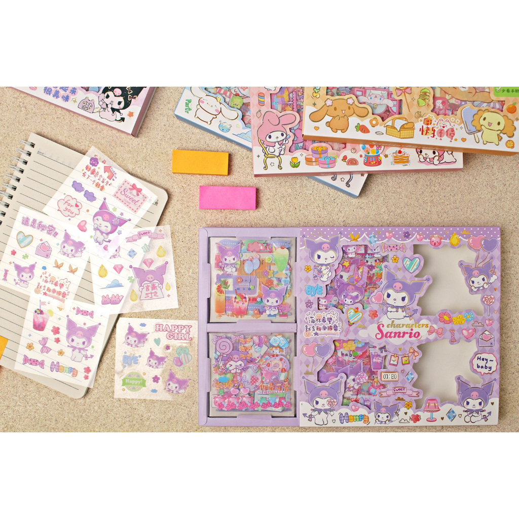 Buku & Alat Tulis > Buku Tulis & Kertas > Label & Stiker > Sticker Sanrio 32 lembar 4 warna Kuromi Cinnamoroll My Melody Aesthetic Stiker Momo Lucu bkn isi 100 pcs murah mixAnti Air Import Karakter Dekorasi Scrapbook Korea