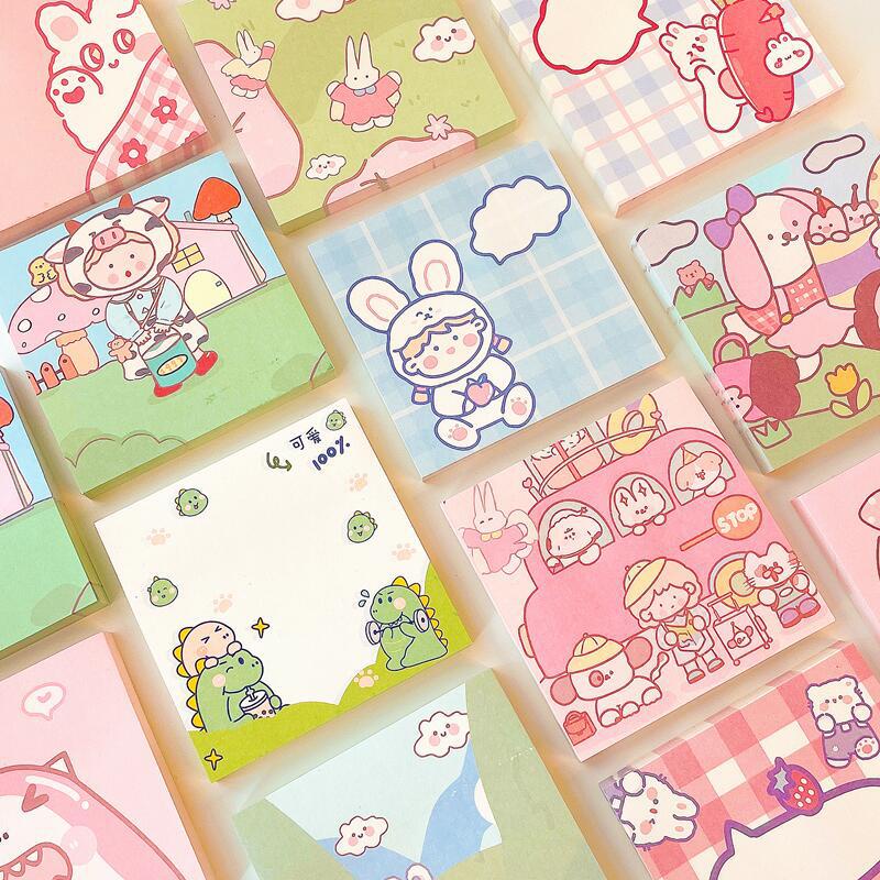 Buku & Alat Tulis > Buku Tulis & Kertas > Memo & Sticky Notes > Sticky note dino Rabbit Bunga Pink Lucu Imut Memo Catatan Mini 8 x 8 cm Kertas Reminder Pengigat Notes
