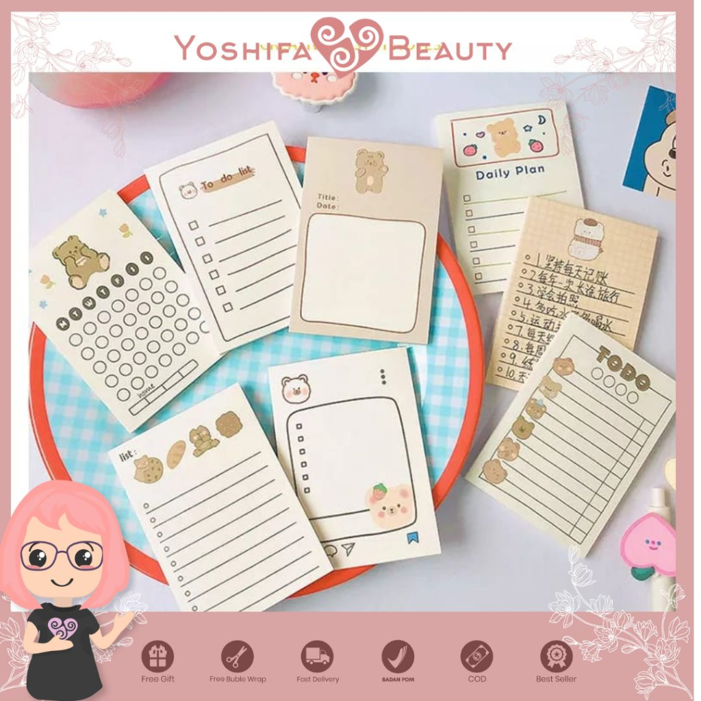 Sticky Notes Daily Planner Bear 50 Lembar Lucu Imut Aesthetic | Post It Notes