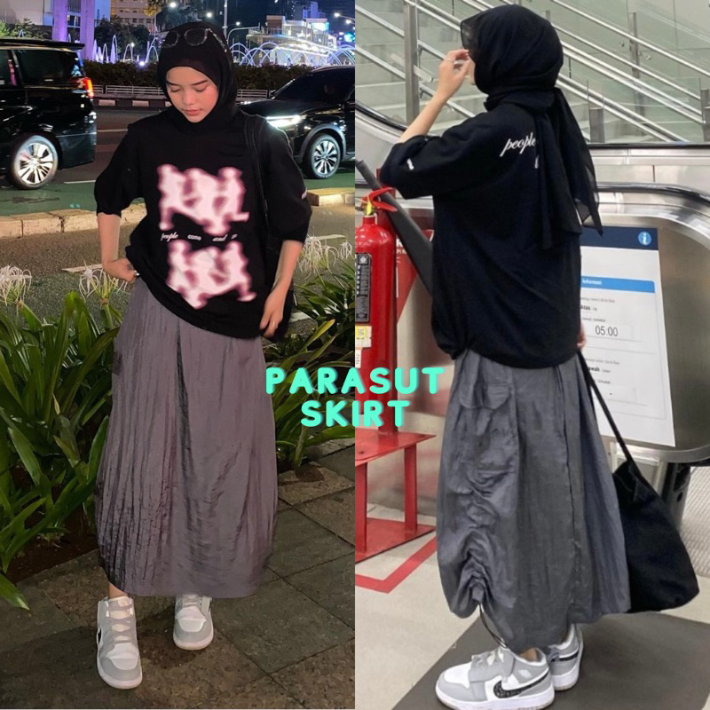Detail Stiego-Nyilon Parasut Skirt Rok parasut skirt rok y2k rok wanita