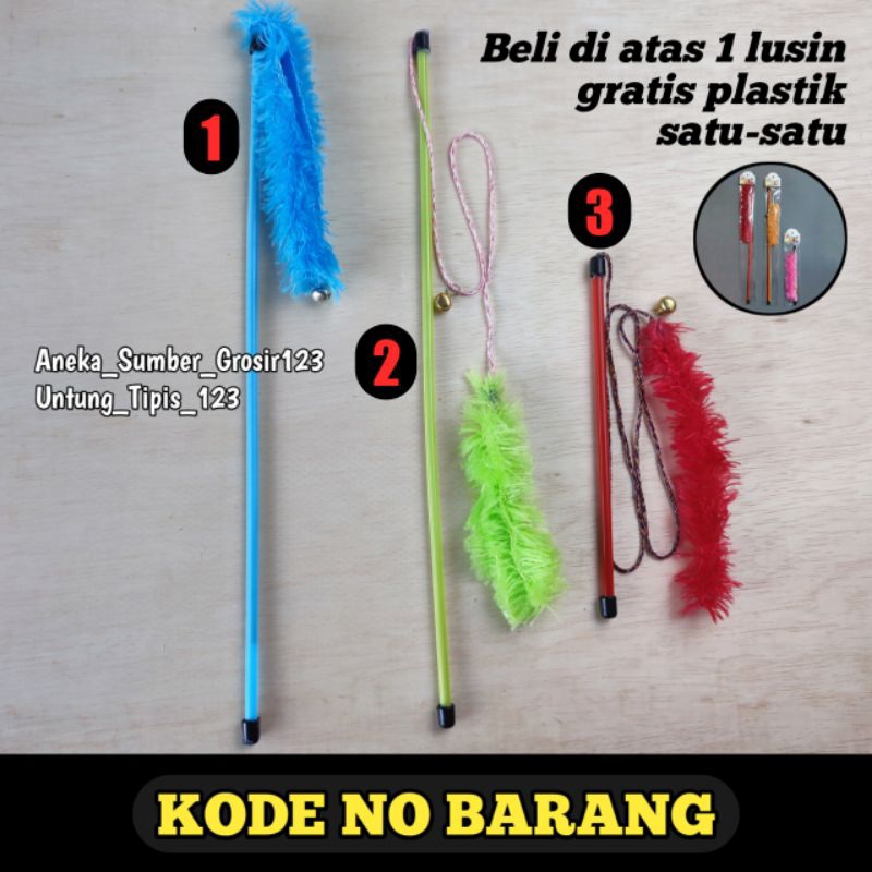 Perlu Di Ketahui, Beli Dus nya aja Belum Termasuk Barang nya yaa. ---------------------------------- KETERANGAN PRODUK !!! - Barang Sesuai gambar - Harga Satuan - Tongkat Pegangan Sangat Kuat gak gampang Patah Gak kayak di Toko Sebelah heee - bahan bulu gak mudah Rusak jika di tarik atau di gigit Hewan - Setiap Model udah di Sertai Lonceng - Udah Bonus Plastik Kemasan Jika Pembelian nya di Atas 10 Pcs - Jika beli di bawah 10 Pcs Maka Kita gak kasih bonusin Plastik Kemasan. - Untuk ukuran dan bahan nya silahkan perhatikan lagi gambar dan liat bagian video nya biar gak salah beli hee