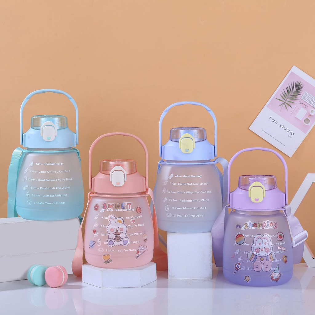 ✅Fitur: - Food Grade ( Aman untuk Makanan / Minuman) - Praktis, mudah digunakan dan dapat di bawa kemana-mana - Kapasitas yg besar yaitu 1500ml - Include Tali + Sedotan dan Gagang - Tutup yg aman karena sistem Flip Up with Lock - Produk ini aman.