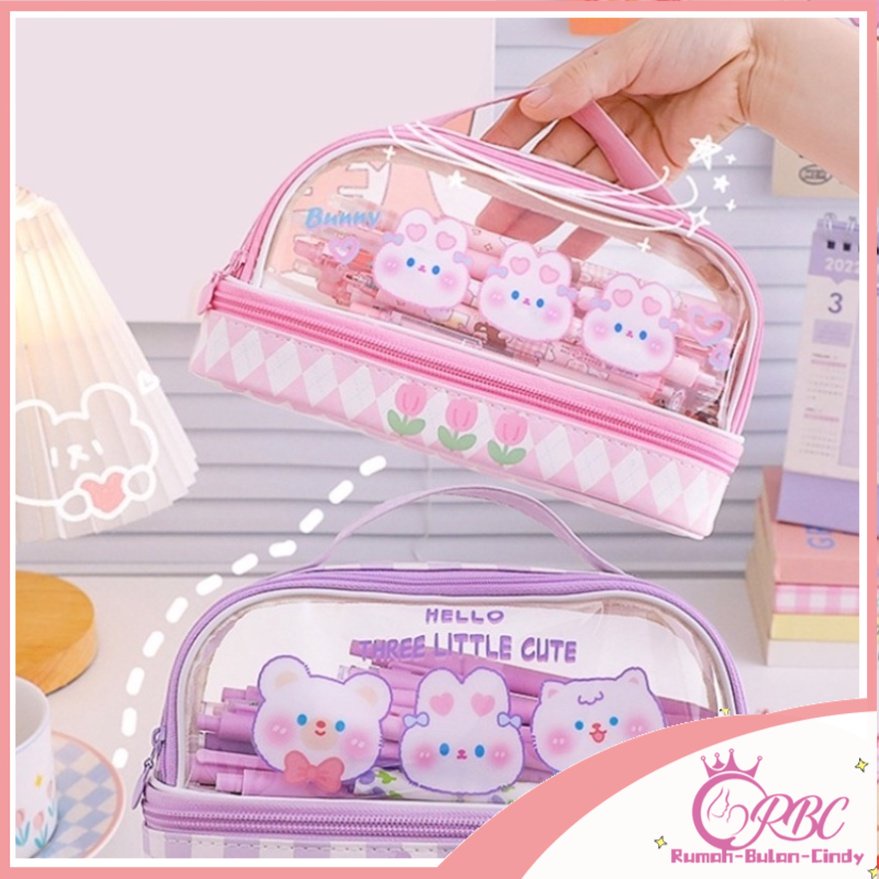 【Stiker 3D gratis】PVC Pencil Kapasitas tinggi Case Kotak Pensil Sekolah Kapasitas Besar Dual Slot Trendy Stylish(Dapat menampung 70 pulpen)