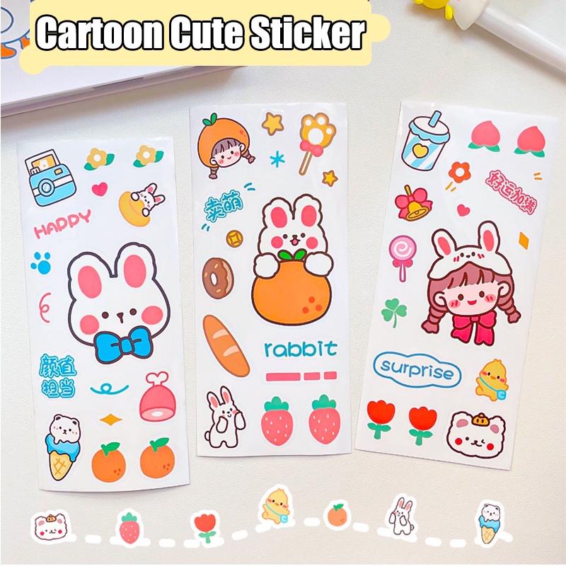 Detail Stiker Akun Tangan Kelinci Kartun Lucu/DIY Tahan Air Gadis Jantung Cangkir Air Decal