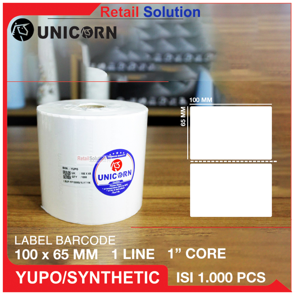 Keunggulan Label Unicorn: 1. Bahan material dari Brand UPM Raflatac / Avery Fasson. 2. Hasil Cetaknya bagus dan merata 3. Bahan lebih tebal dibanding non brand. Gap mudah terdeteksi oleh sensor printer. Tidak menyebabkan label banyak terbuang. 4. Lem kuat dan Rata. 5. Top Coated, Coating sudah BPA Free. Aman untuk Manusia, Label makanan/ minuman, Obat dll. 6. Coating tidak merusak Printhead. 7. Top coated dengan Anti Air, Anti Gores, Anti Minyak ( Khusus Varian Thermal)