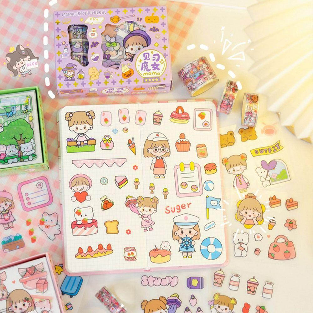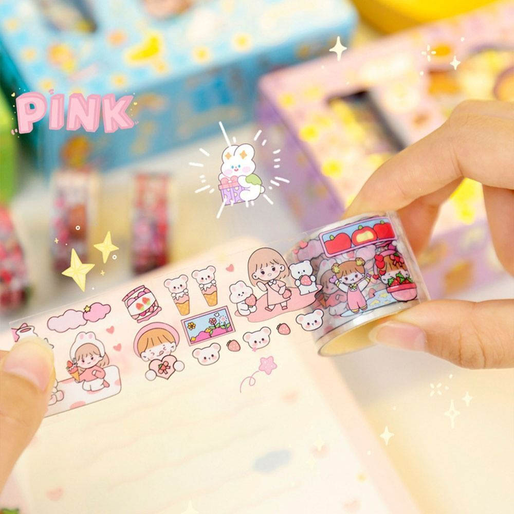 Detail Stiker Box Mini Motif Kartun Korea 10 Lembar Dan 4 Roll TZ42