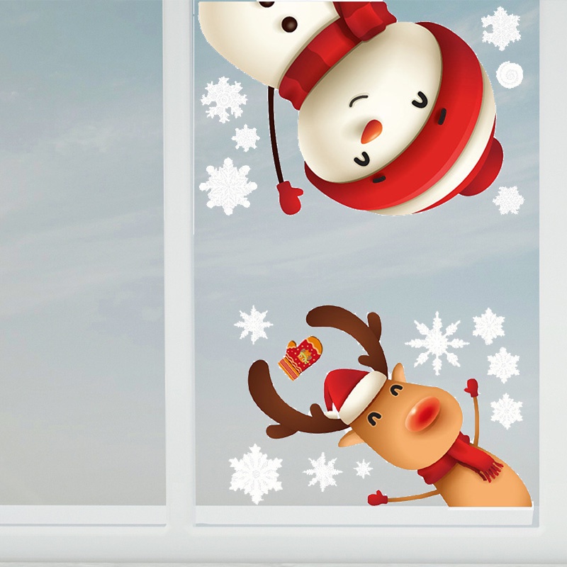 Detail Stiker Dinding Desain Santa Elk Snowman Dapat Dilepas Untuk Dekorasi Natal