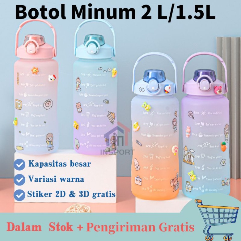 Detail 【Stiker gratis】BOTOL MINUM ANAK GEMOY 3D VIRAL MURAH WARNA GRADASI PASTEL 1.3/2 LITER 1300 ML 2D & 3D STICKER BOTOL MINUM ANAK TALI MOTIVASI GRADASI