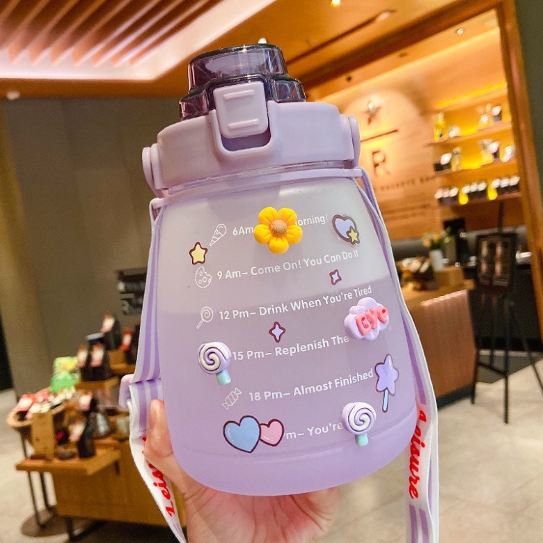 Perlengkapan Rumah > Peralatan Makan > Botol Minum & Aksesoris > 【Stiker gratis】BOTOL MINUM ANAK GEMOY 3D VIRAL MURAH WARNA GRADASI PASTEL 1.3/2 LITER 1300 ML 2D & 3D STICKER BOTOL MINUM ANAK TALI MOTIVASI GRADASI