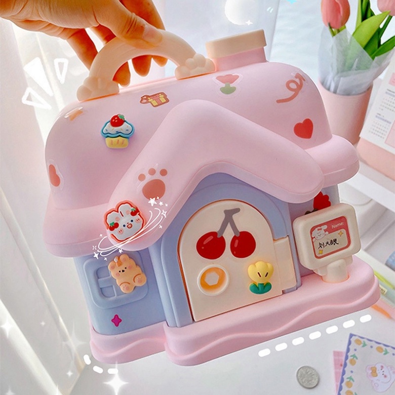 Souvenir & Party Supplies > Souvenir & Hadiah > Celengan > 【Stiker Gratis】 Celengan Baru Bersih Merah Gadis Lucu Celengan Rumah Kecil Kotak Uang Hadiah Tahun Baru Anak-anak