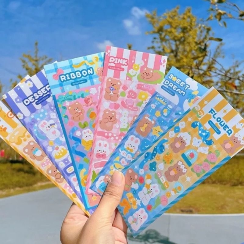 Stiker hologram motif lucu bear and rabbit stiker kartun anti luntur