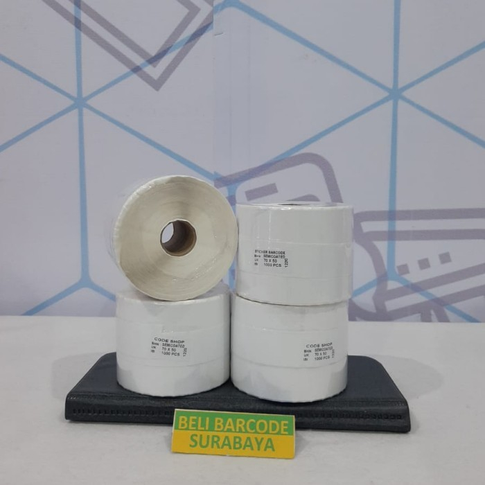 Informasi Produk : - Bahan : Semicoated - Lebar : 70 mm - Tinggi : 50 mm - Baris : 1 Line - Isi : 1.000 pcs / roll - Core : 1 Inch (Kecil) - Perforasi / Ada Garis Sobek - Gap Kanan Kiri Atas Bawah - Harga diatas tercantum untuk 1 Roll label - Berat diatas tercantum untuk 1 Roll label